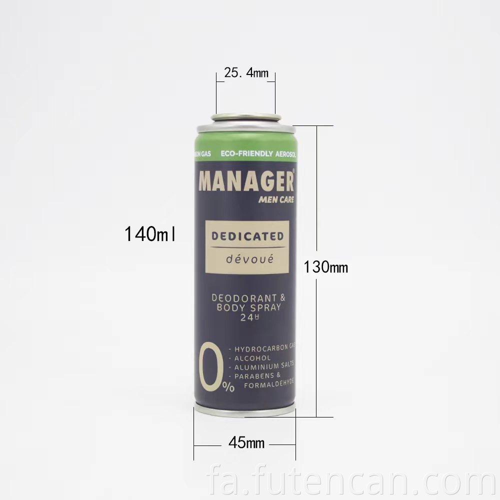 خانه > محصولات > قوطی آئروسل > قوطی اسپری بدن > قوطی اسپری بدن 140 میلی لیتری آئروسل