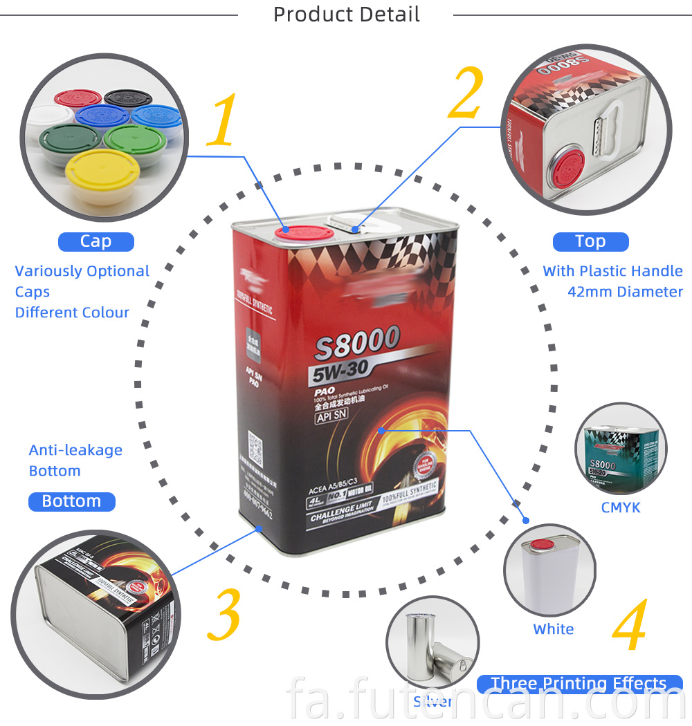 • قوطی فلزی 4 لیتری برای قوطی قلع روغن روان کننده